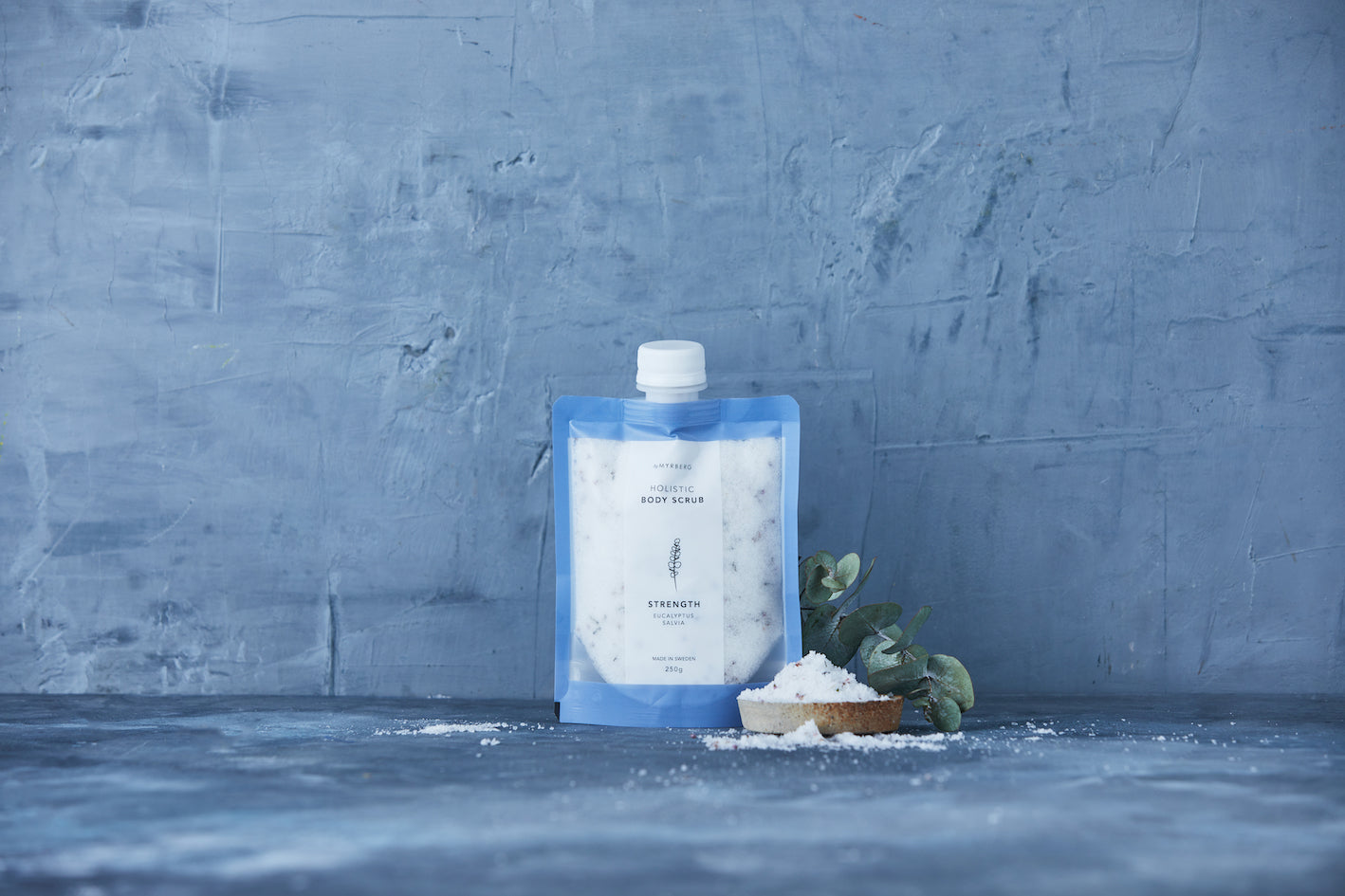 Holistic Body Scrub är en mineralrik kroppsskrubb som innehåller salt för exfoliering och en mix av naturliga, vårdande oljor. Den avlägsnar döda hudceller, rengör på djupet, mjukgör och återfuktar huden. Dessutom har den aromaterapeutiska fördelar tack vare eteriska oljor som eukalyptus och salvia, som hjälper till att öppna luftvägarna och förhöjer sinnesupplevelsen.