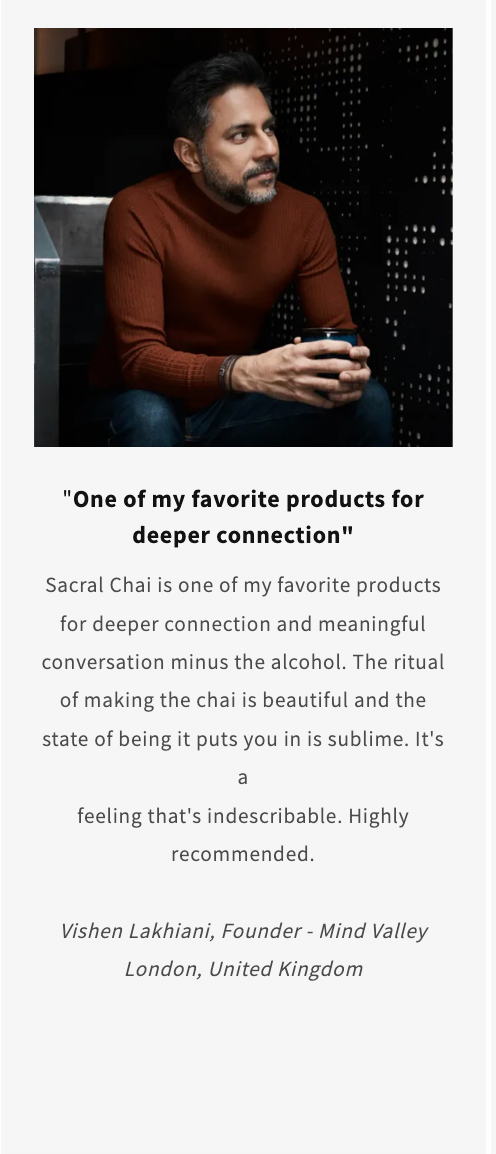 Förbered en kopp Sacral Chai – en ceremoniell dryck med rå kakao och afrodisiakala örter som väcker livskraft och öppnar hjärtchakrat. Blanda i varm vätska, vatten eller växtbaserad mjölk evt med